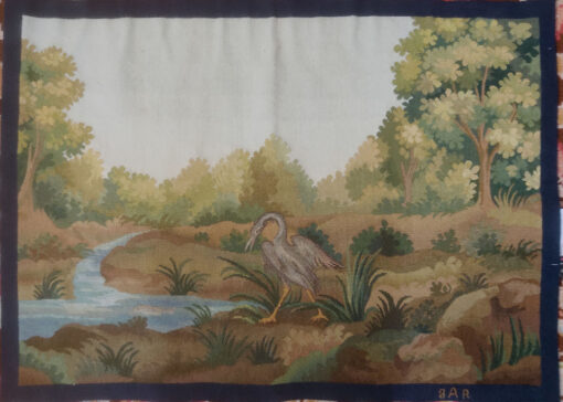 Petite tapisserie d’Aubusson, tissage par la Manufacture Braquenié au 20ème siècle. Elle possède un bolduc.